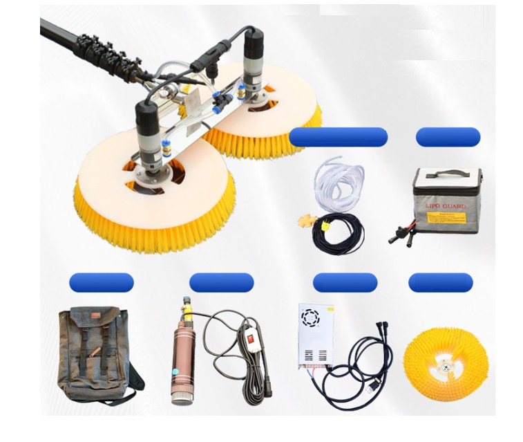ชุดแปรงล้างแผงโซล่าเซลล์2หัวพร้อมอุปกรณ์ ใช้แบตเตอรี่