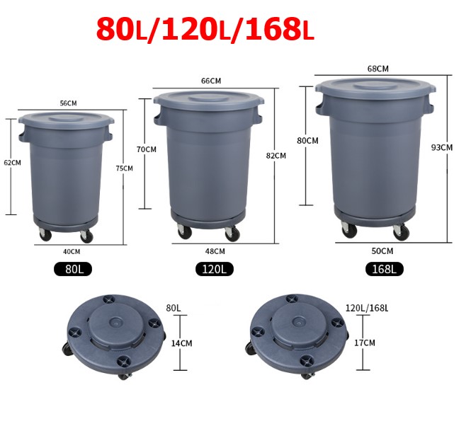 ถังขยะพลาสติก168ลิตร ฐานถอดได้ มีฝาปิด