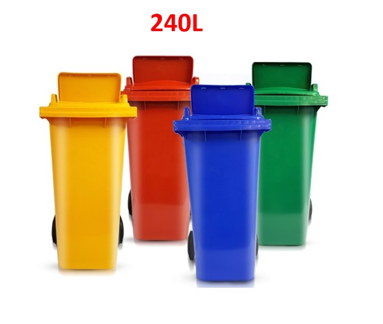 ถังขยะเทศบาล ถังขยะพลาสติก240ลิตร มีล้อ2ล้อฝามีช่องทิ้ง