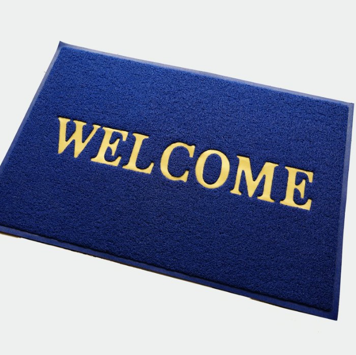พรมดักฝุ่น สำเร็จรูปมีข้อความwelcome หนา 10-12 มิล สีแดง สีเขียว สีเทา สีน้ำเงิน สีน้ำตาล มีหลายขนาดให้เลือก